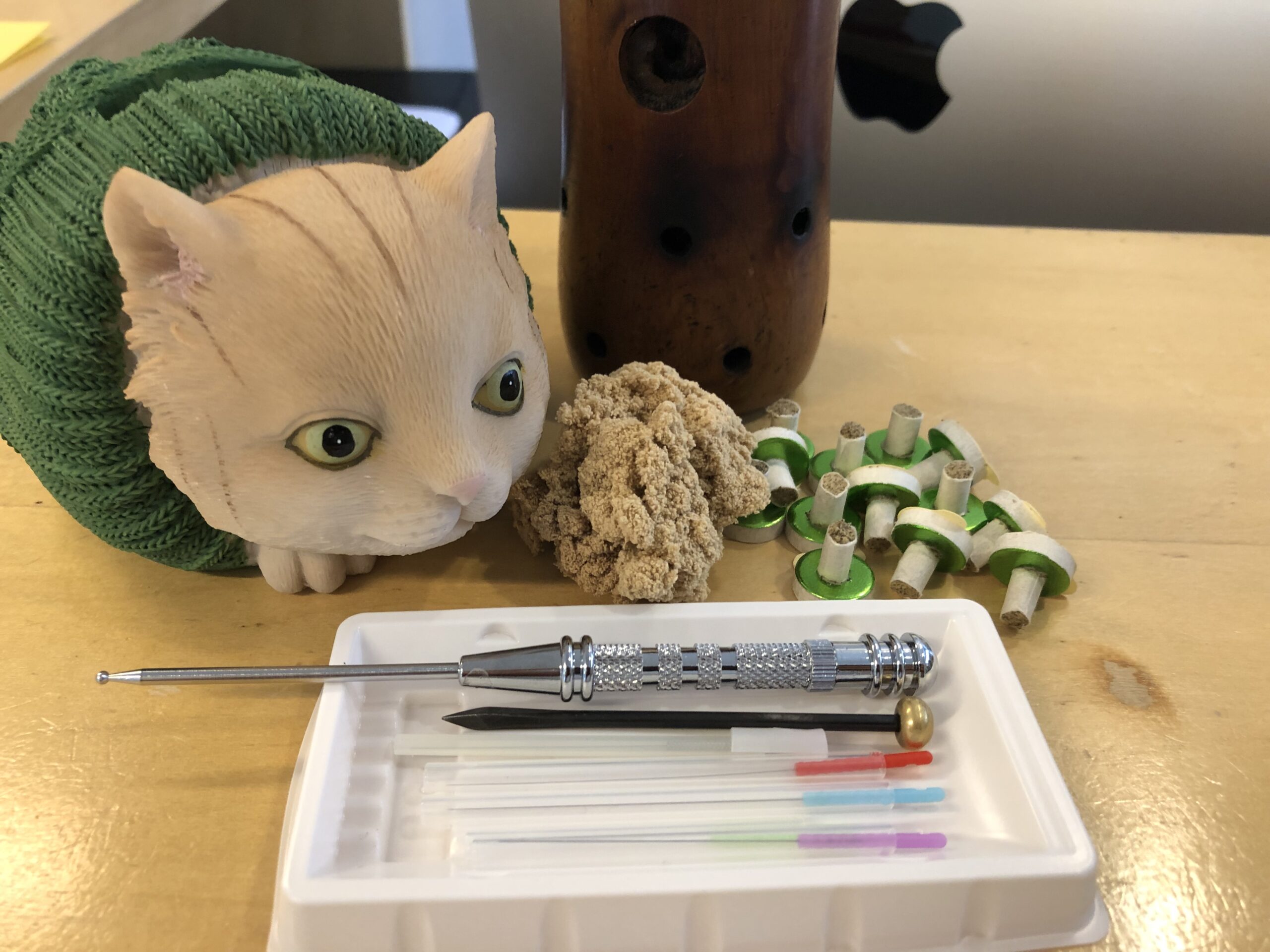 お灸は、温灸と呼ばれるもので、力のないところを見つけて施しました。最後に頭を緩めて施術を終了しました。
